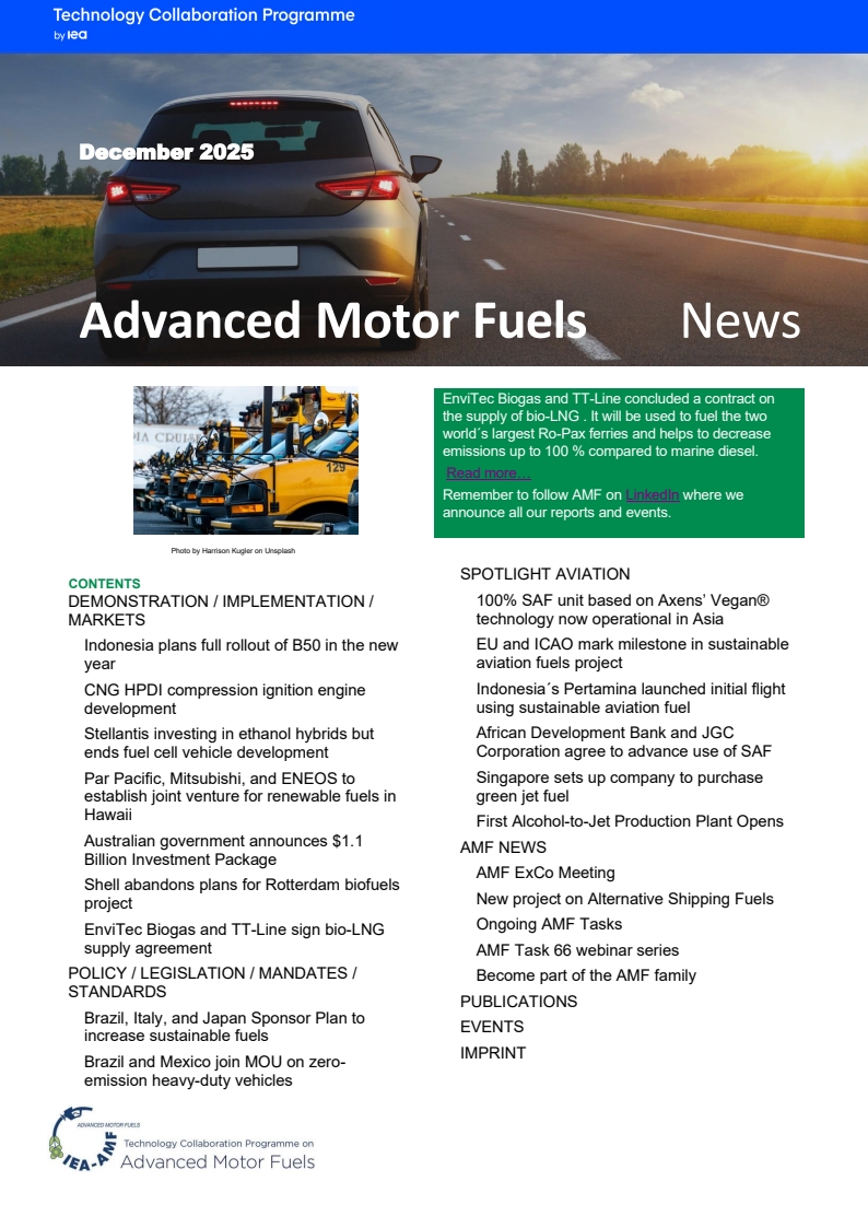 AMF publishes three newsletters per year. Brief news articles on advanced motor fuels, transport technology and policies are complemented by links to related publications and events.