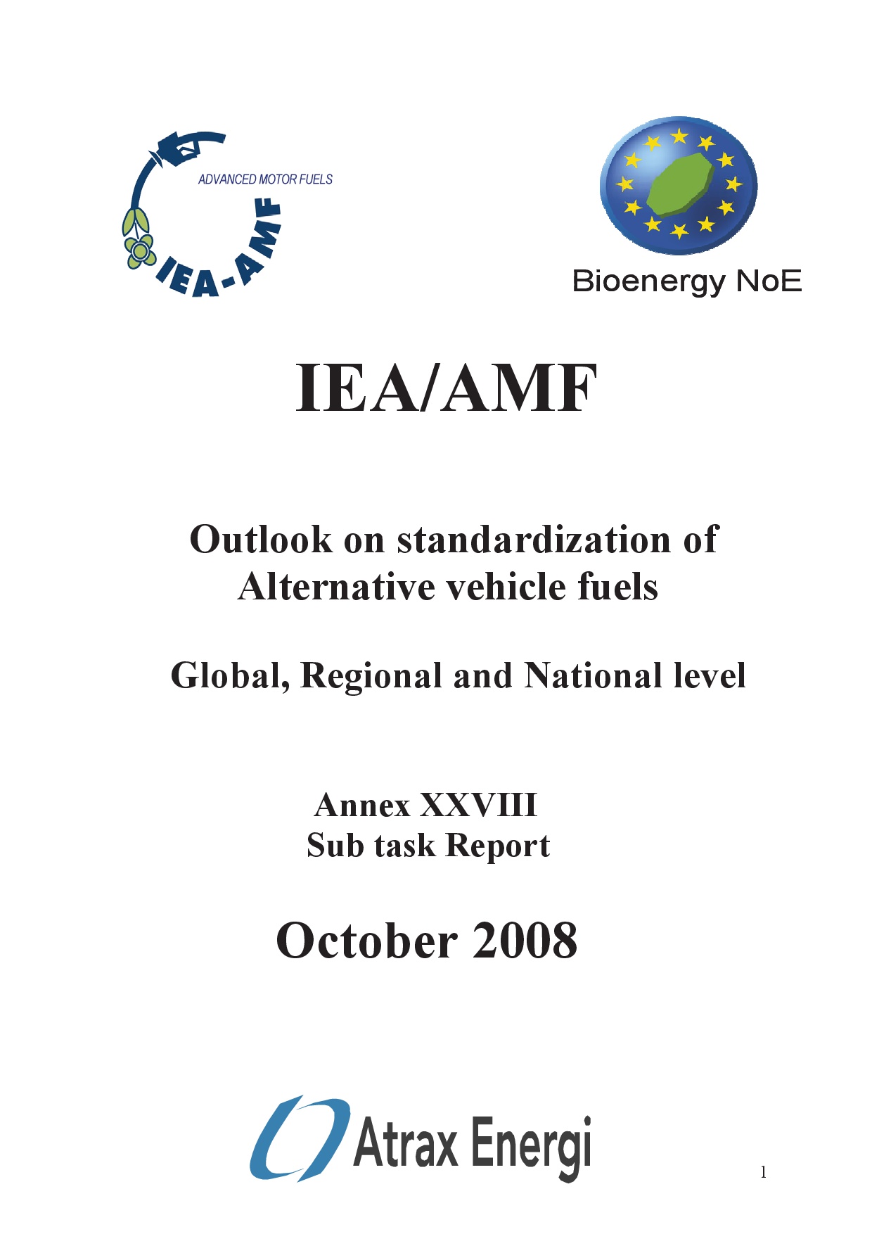 This report is produced under the framework of the International Energy Agency’s Implementing Agreement on Advanced Motor Fuels (IEA/AMF) and its information Task 28. The report is IEA/AMF's latest contribution to the knowledge about standards and the ongoing work on standardization of alternative fuels and has been prepared by Björn Rehnlund (Atrax Energi AB, Sweden).